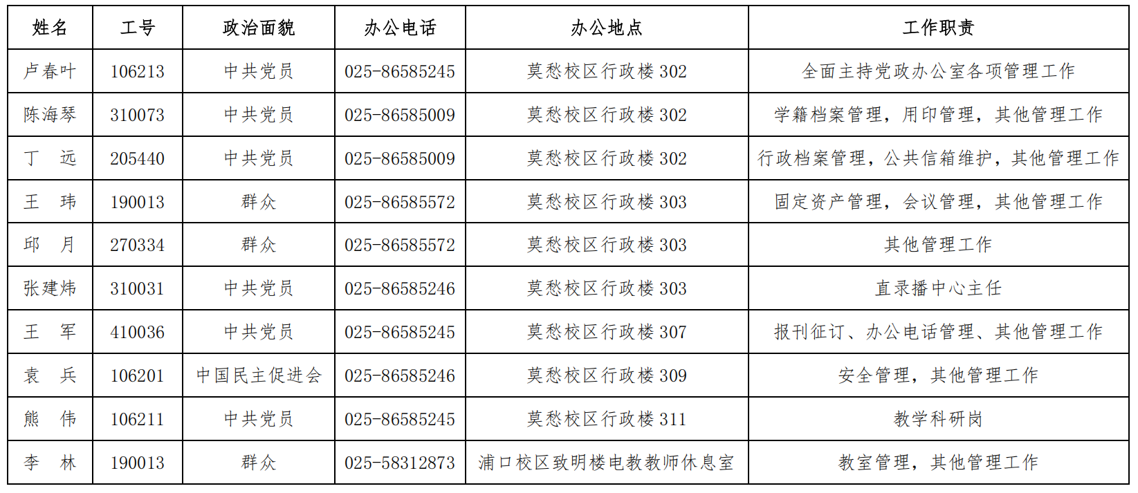 党政办公室是在学院领导下的综合管理服务部门。主要工作职责是:负责组织安排党政各类会议,做好会议记录,起草印发会议纪要,检查督促会议决定的贯彻执行情况;根据党政的工作思路和要求,深入实际开展调查研究,提出工作方案,为党政决策提供依据;协助学院领导组织协调各部门的综合性工作;围绕学校中心工作,竭诚为师生员工服务;负责学院各类文件的起草、收发、归档,往来公文的登记、传阅、传达、收回、归档工作;负责学院公章的使用与保管;负责教职员工的考勤考核,人事薪酬工作;负责日常办公用品的采购及领用;协助学院做好来客的接待工作等。